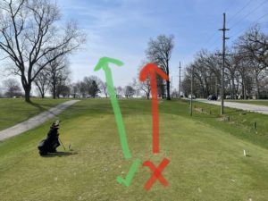 Another reason that I believe this helps with straighten my drives is the tee box itself. Have you ever noticed that much like a well placed sand trap in the fairway, the angle of the tee box can throw us off from where we “should” aim our shot. Take a look at this tee box from Youche Country Club in Crown Point, IN(youchecc.com).